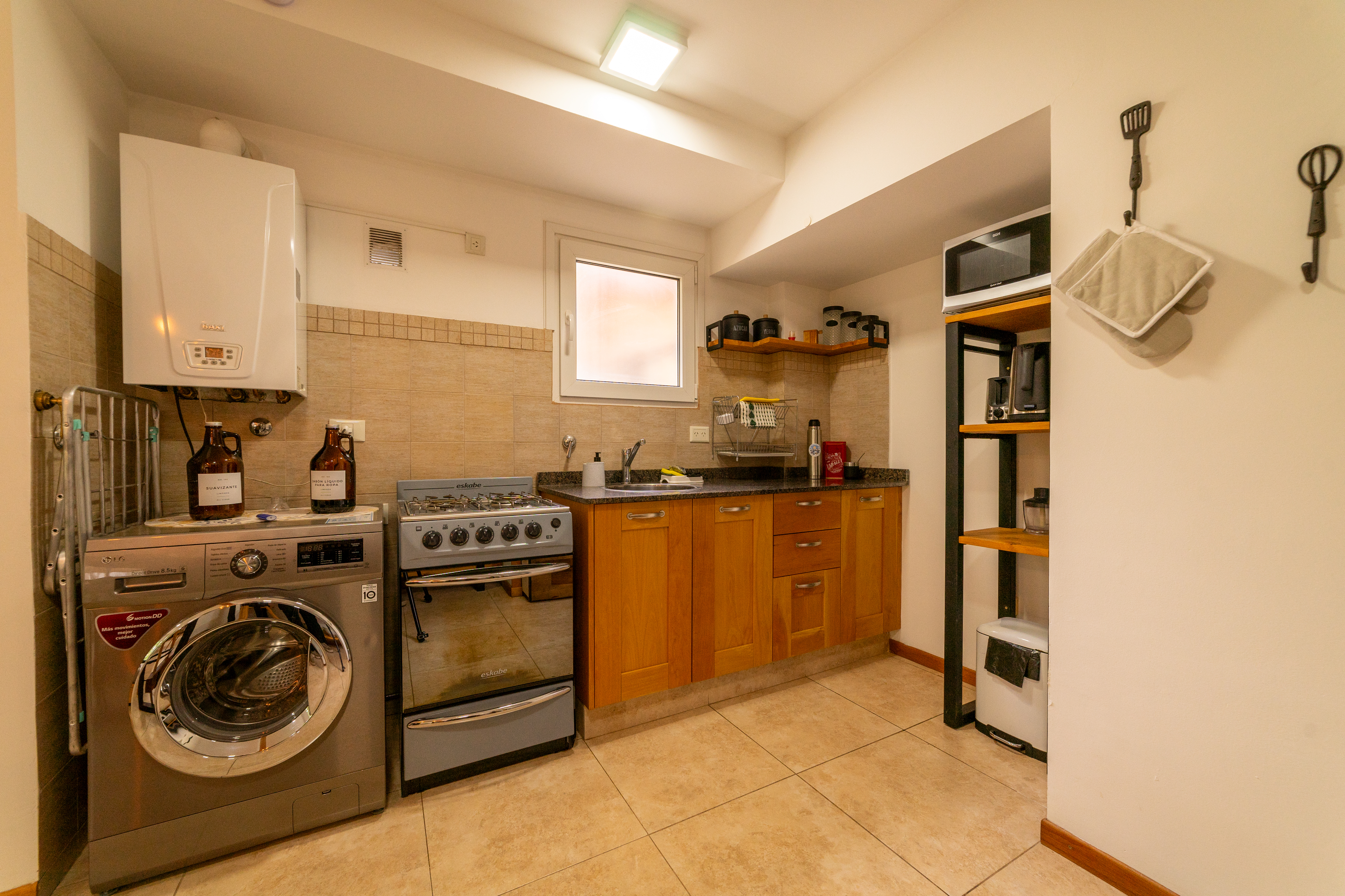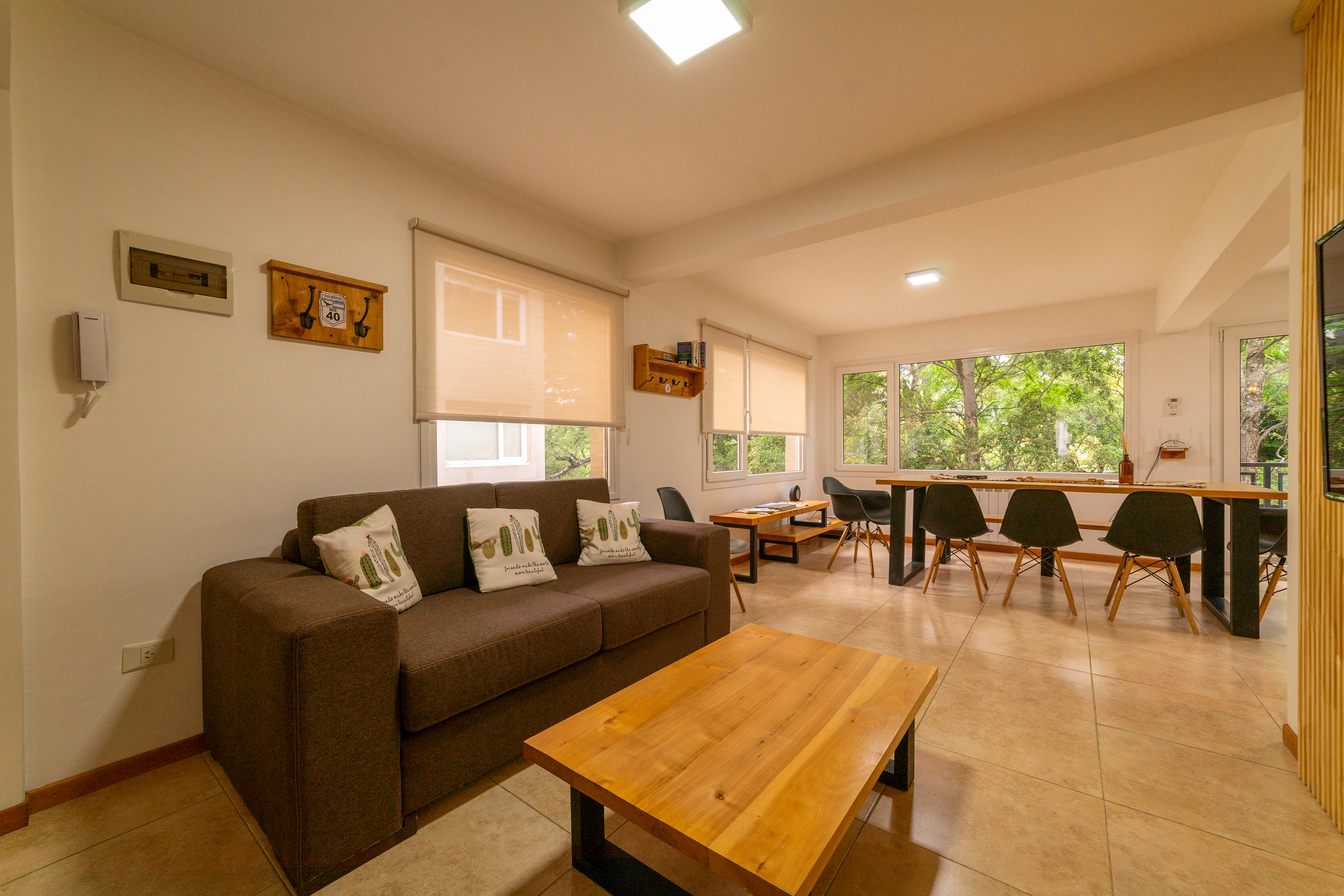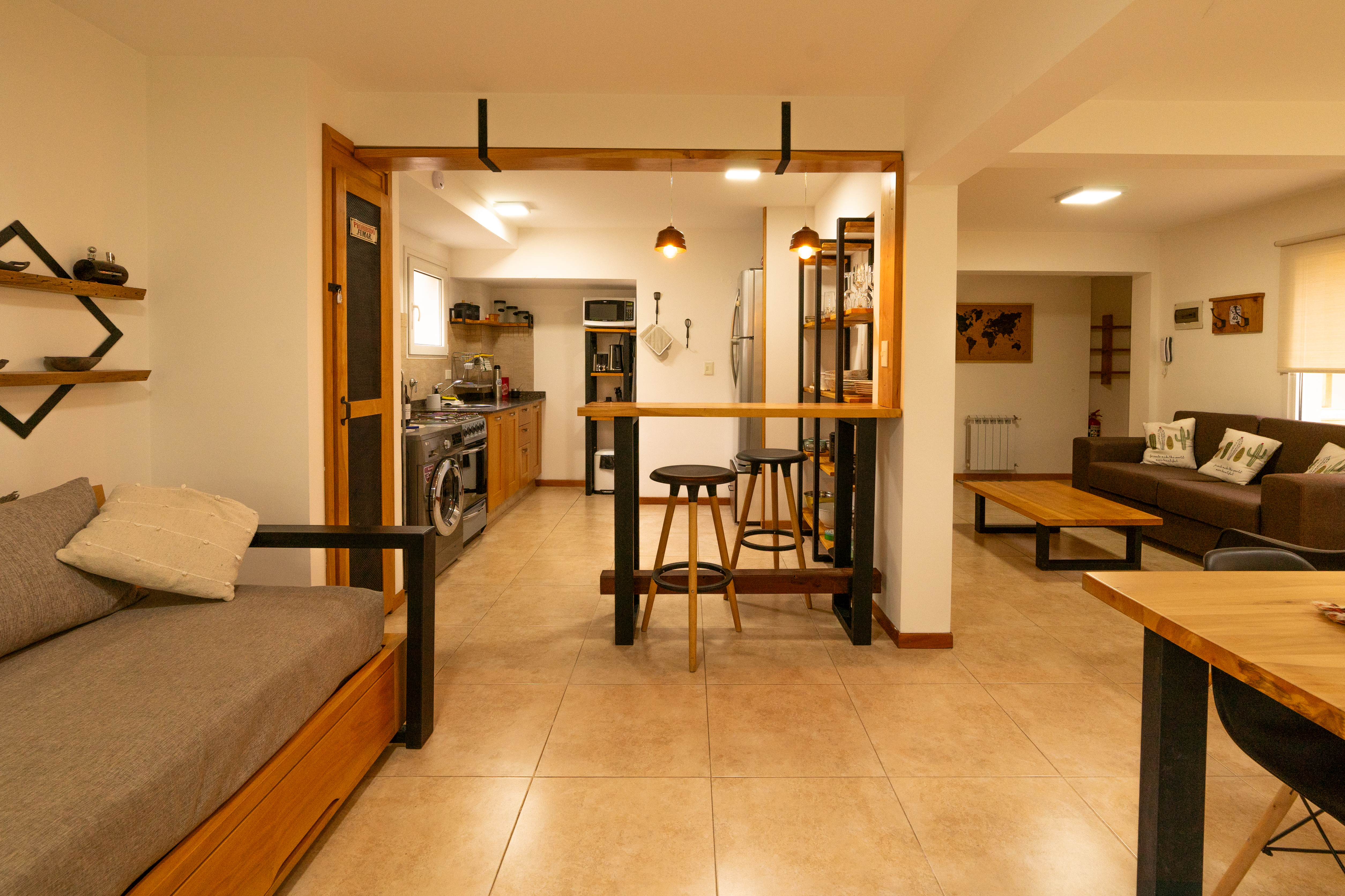 Moderno departamento para 5 personas, una habitación matrimonial y otra habitación triple. Cocina completa y parrilla.