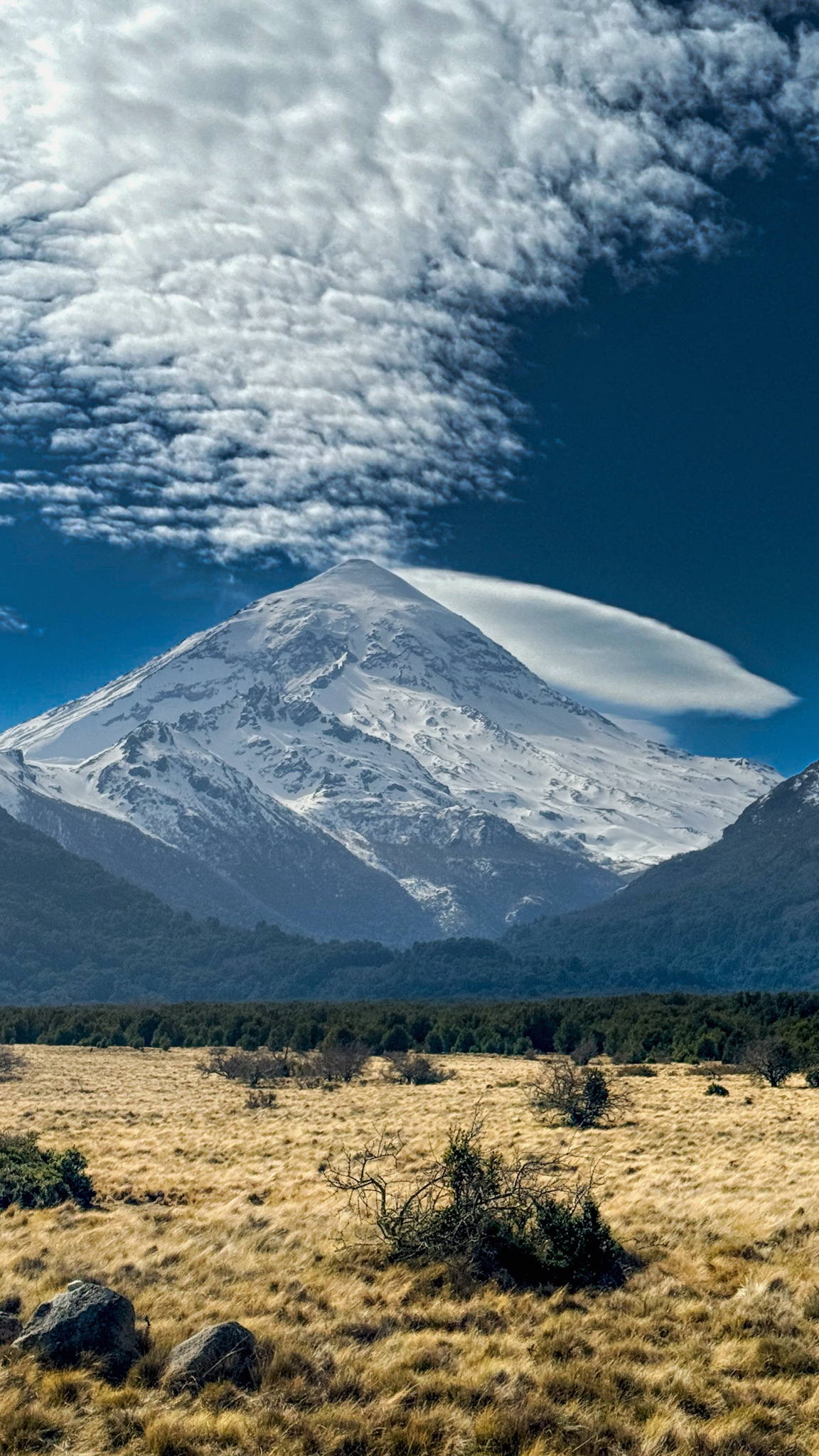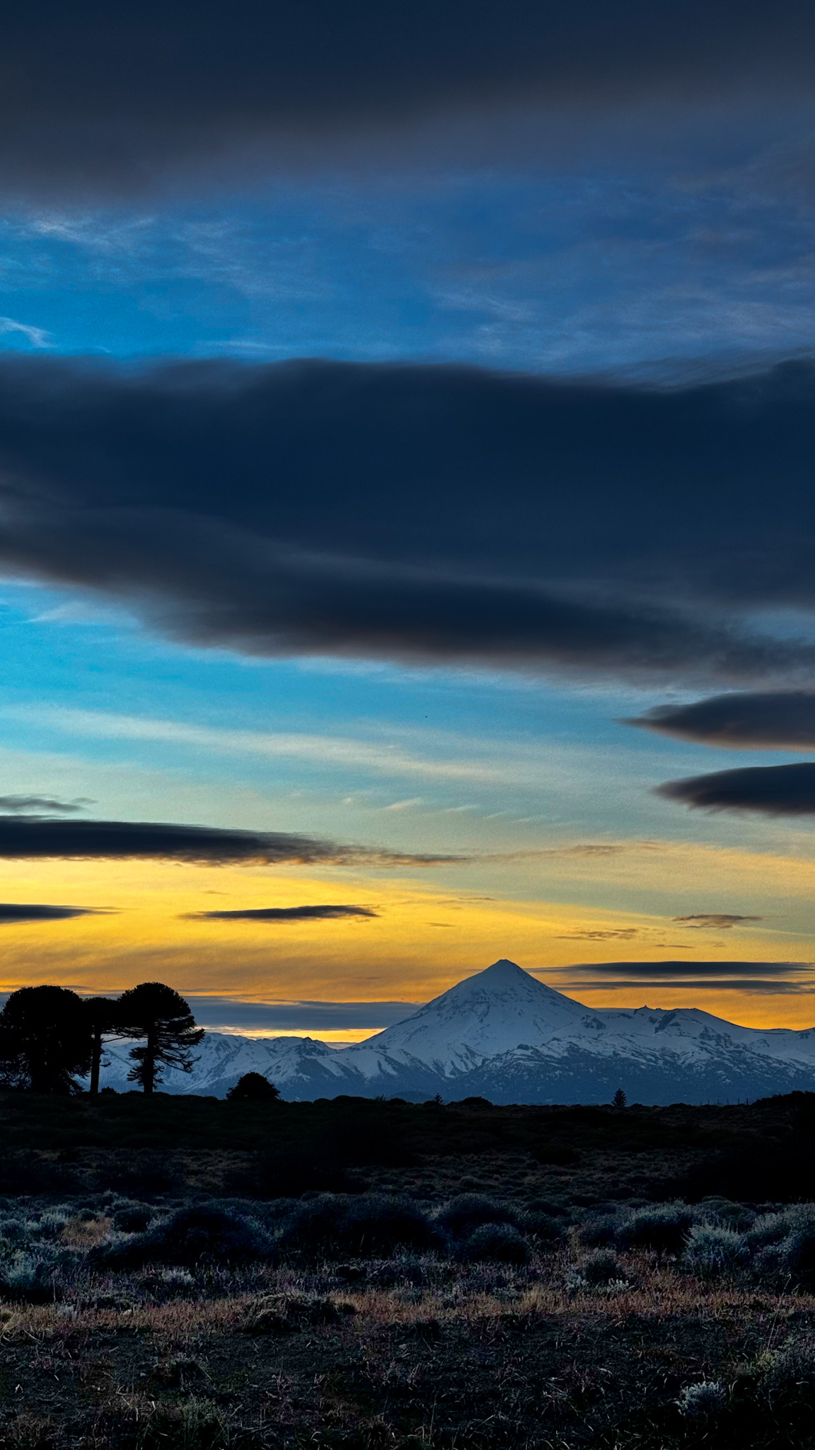 El camino se angosta permitiendo disfrutar del ambiente natural y de la inmensidad del lago hasta encontrarte con el imponente Volcán Lanín, con sus 3776 mts de altura.